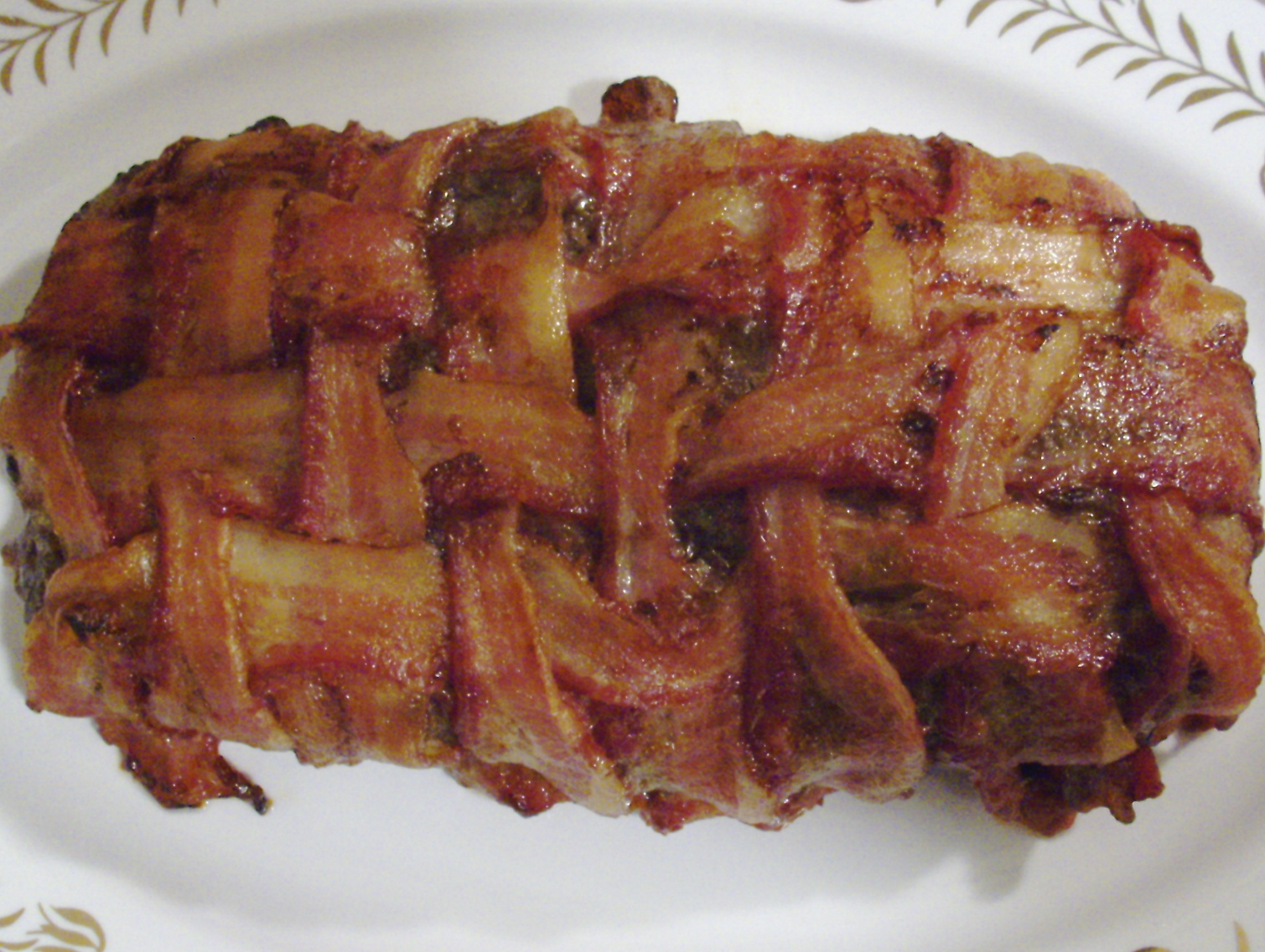 [Blogger's Note]This isn't Jen's mom's meatloaf, but it will give you an idea of what a braided bacon meatloaf should look like. Yummy, right?